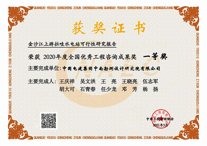 完成单位:中国电建集团中南勘测设计研究院有限公司